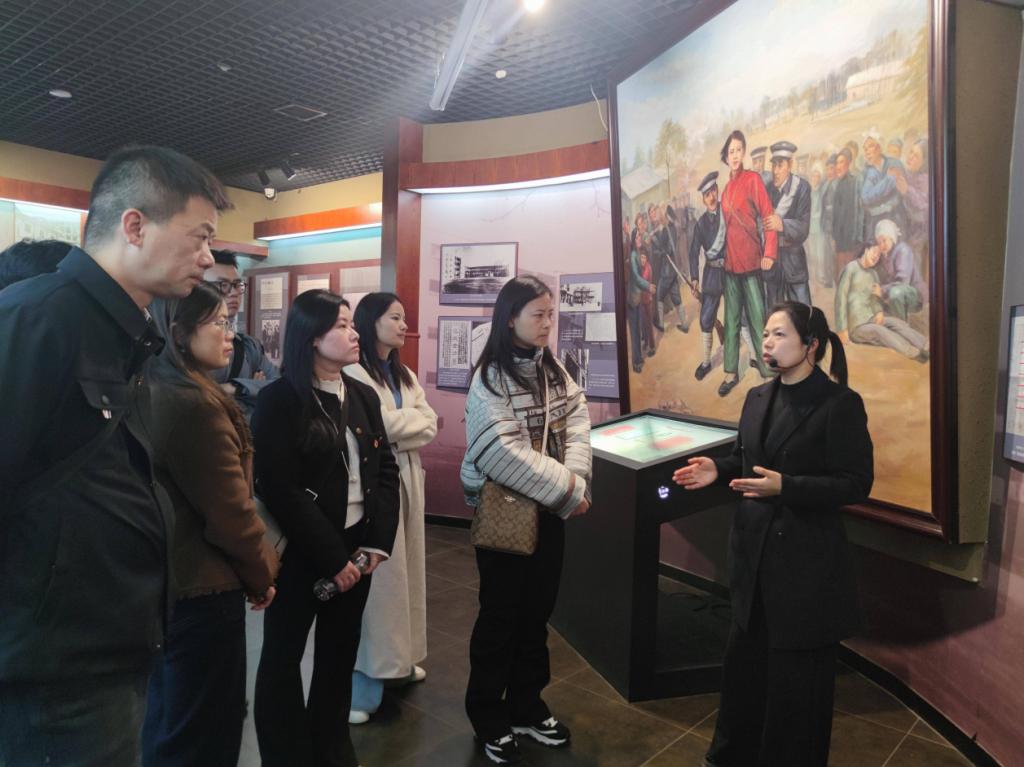 在向警予同志纪念馆,党员教师们驻足于展墙前,凝视向警予同志亲笔作词作曲的溆浦女校校歌手稿时,音乐专业教师即兴清唱,仿佛让时光倒流回溆浦女校时代。活动中,党员教师们不再是单纯听众,而是历史的感悟者和传播者。他们从旋律起伏解读教育追求,从歌词字句感受人格力量,实现了音乐素养与理想信念教育的深度融合。
