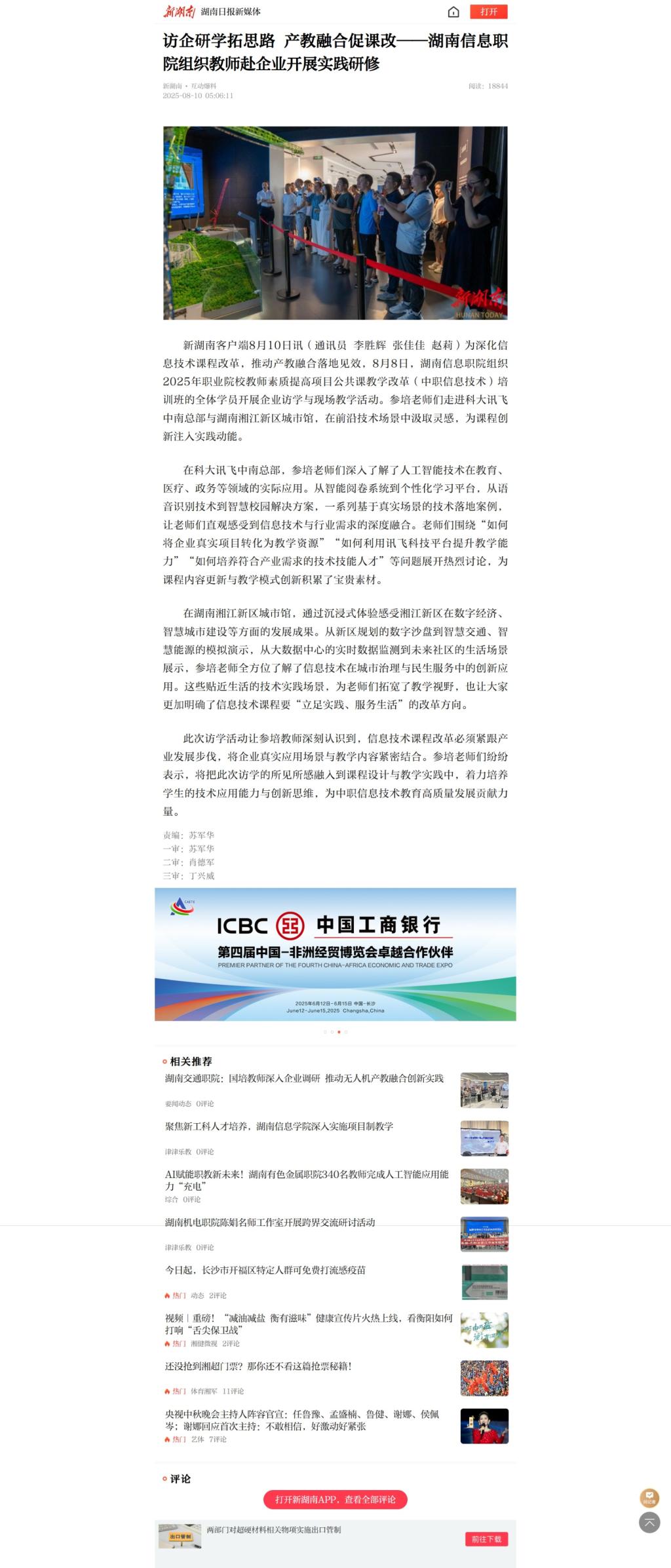 8月10日,新湖南发布《访企研学拓思路 产教融合促课改——湖南信息职院组织教师赴企业开展实践研修》