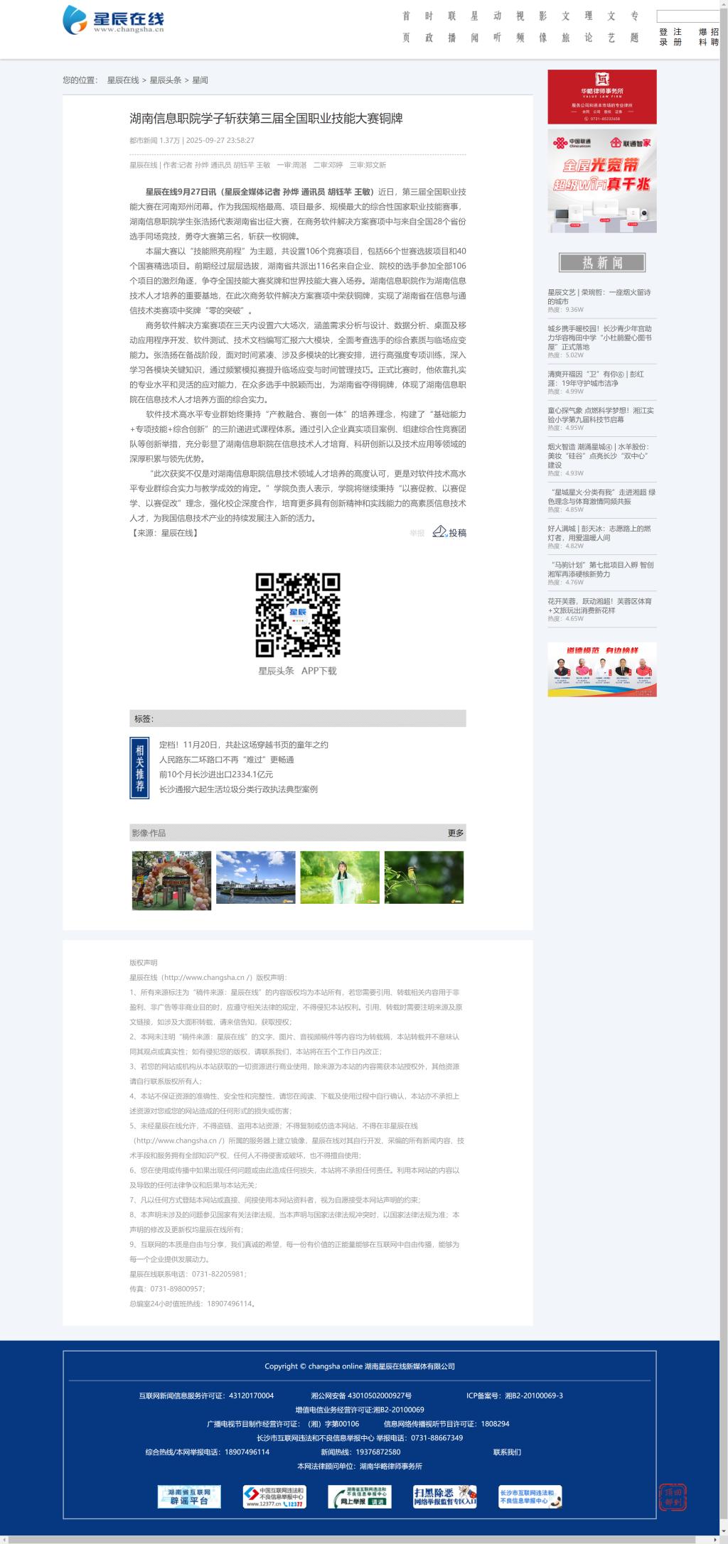 9月27日,星辰在线发布《湖南信息职院学子斩获第三届全国职业技能大赛铜牌》