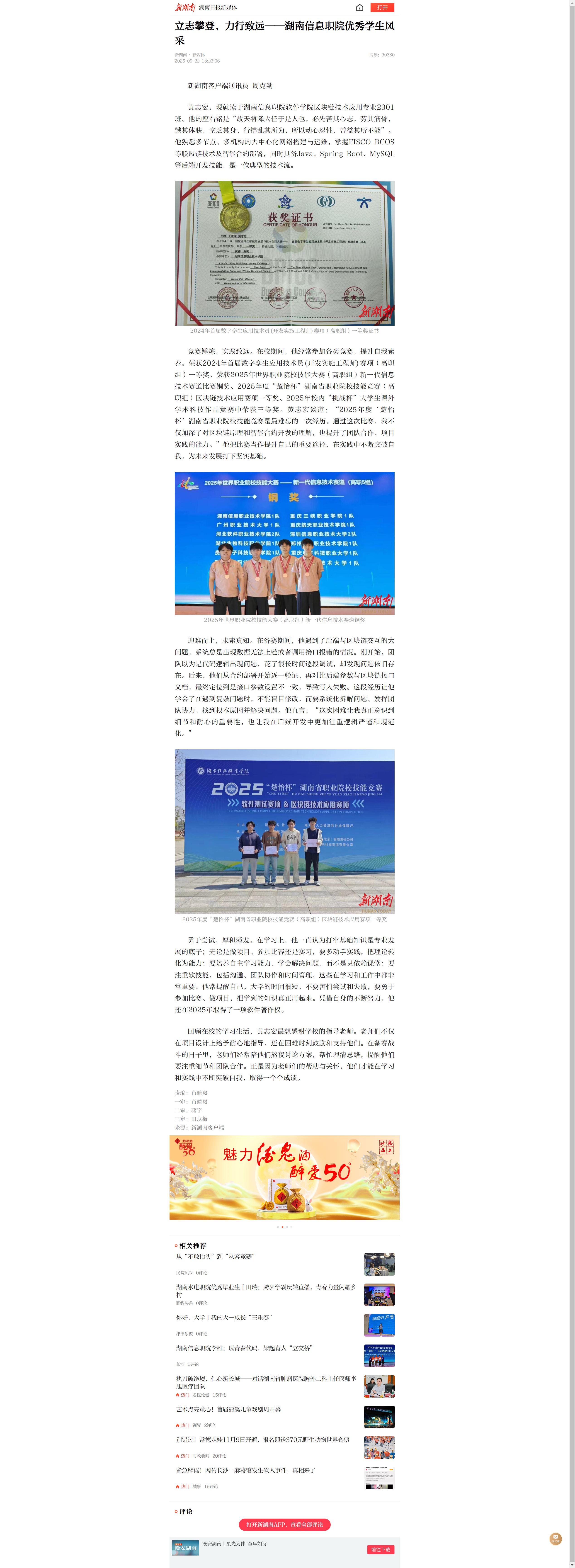 9月22日,新湖南发布《立志攀登,力行致远——湖南信息职院优秀学生风采》