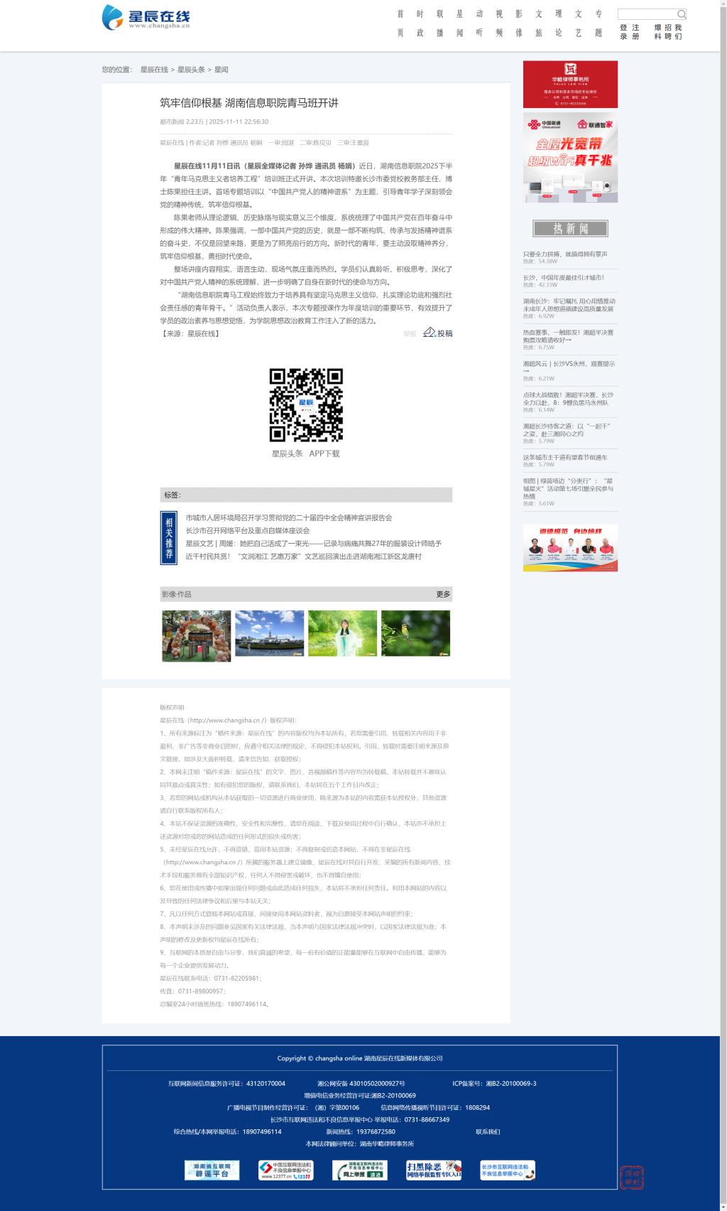 11月11日,星辰在线发布《筑牢信仰根基 湖南信息职院青马班开讲》