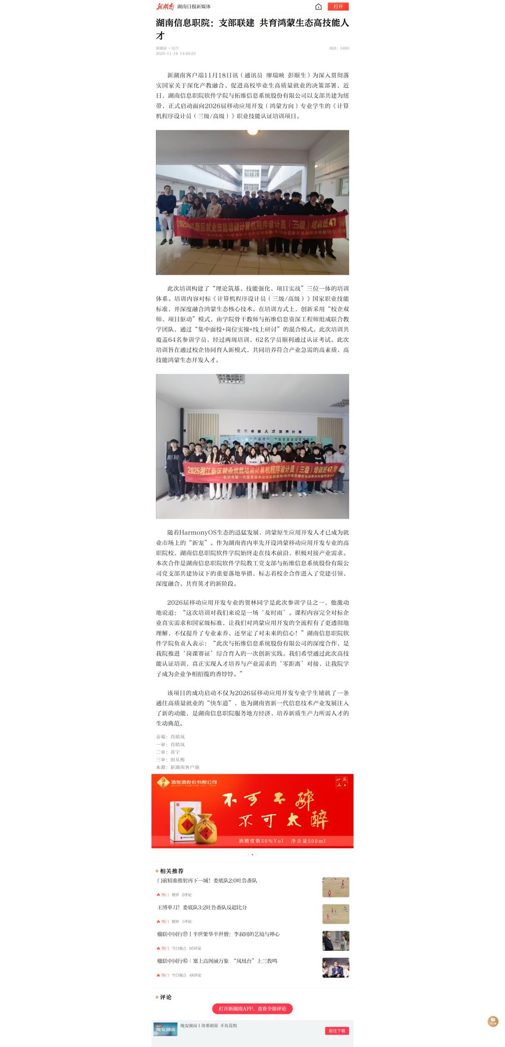 11月18日,新湖南发布《湖南信息职院:支部联建 共育鸿蒙生态高技能人才》
