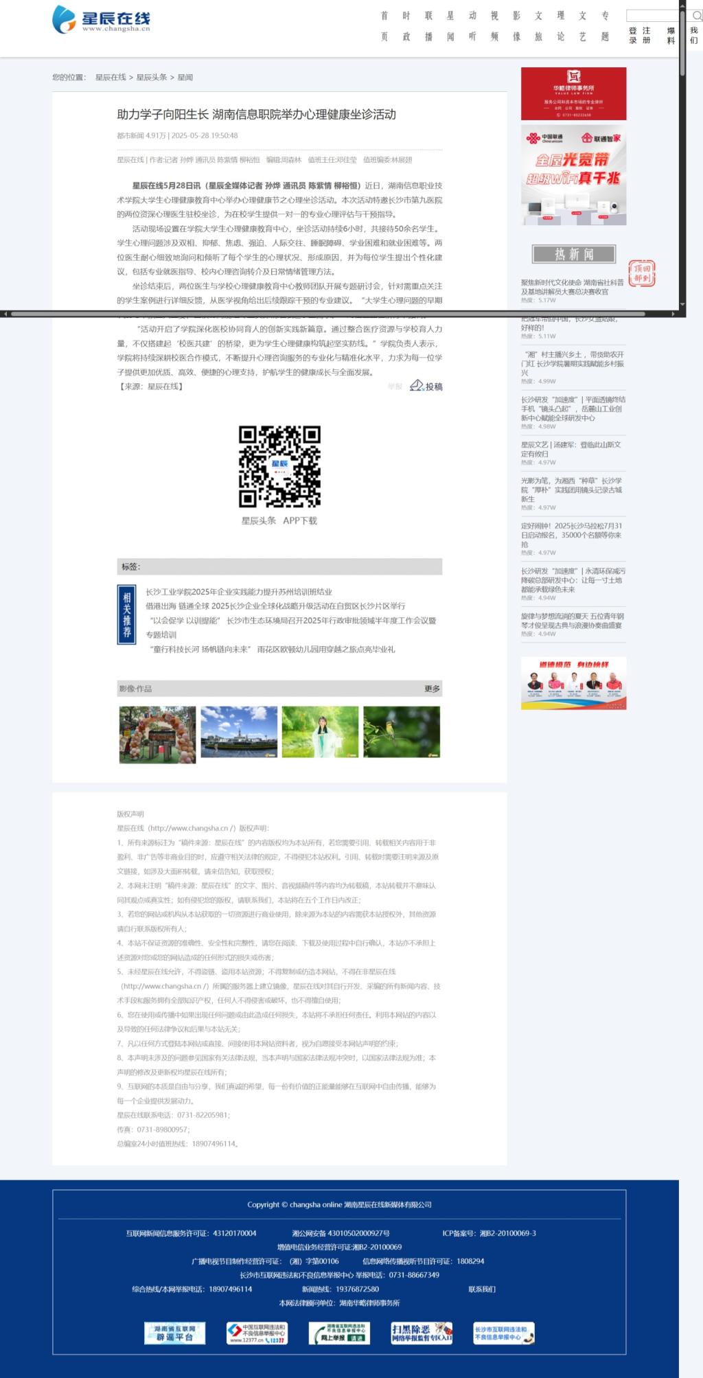 5月28日,星辰在发布《助力学子向阳生长 湖南信息职院举办心理健康坐诊活动》