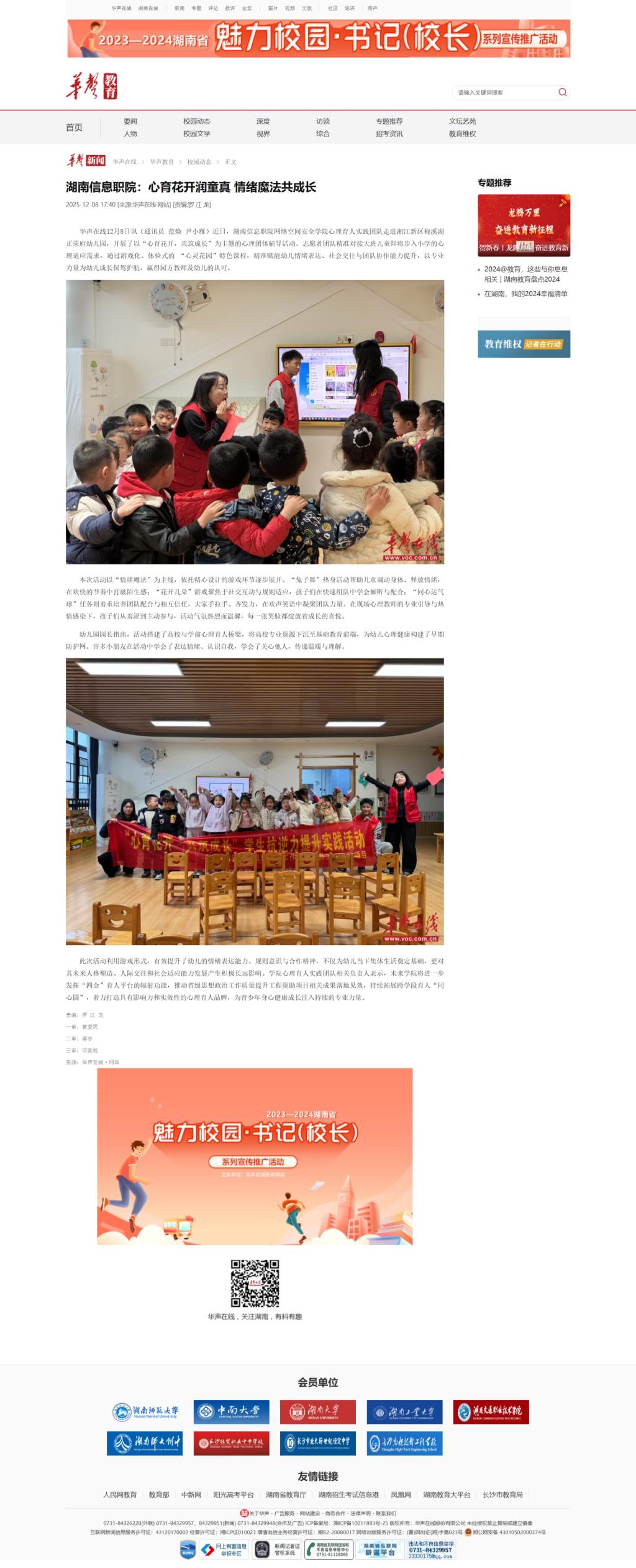 12月8日,华声在线发布《湖南信息职院:心育花开润童真 情绪魔法共成长》